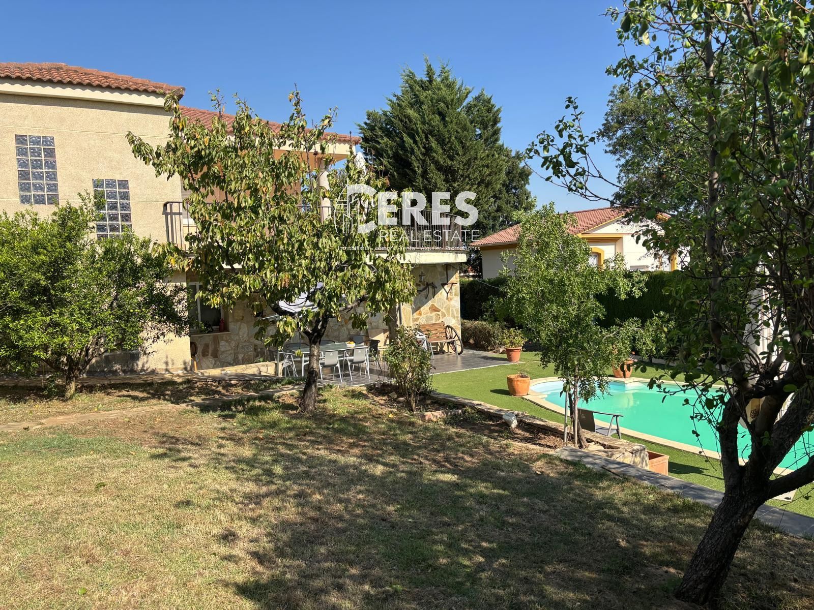 Este impresionante chalet independiente se levanta sobre más de 1.000 m² de terreno, rodeado de vegetación mediterránea y junto a un campo de golf. Su diseño fusiona el encanto del estilo tradicional con detalles contemporáneos, destacando un pequeño lago en la fachada que aporta carácter desde el primer momento. En su interior, destaca la luminosidad y calidez de todos los espacios.En la planta baja, encontramos un gran salón con chimenea, tres dormitorios más, un baño con plato de ducha y una habitación adicional perfecta como despacho u oficina. Esta planta también dispone de una segunda cocina y zona de lavadero, lo que permite disfrutar de dos viviendas independientes en una, adaptables a cualquier necesidad.En la primera planta, se distribuyen tres amplios dormitorios, uno de ellos con baño privado con bañera de hidromasaje y un vestidor de gran tamaño. La planta superior alberga habitaciones adicionales con su propio baño y acceso a una terraza ideal para disfrutar de los atardeceres. La cocina, amplia y luminosa, se abre al salón, creando un espacio cómodo y funcional para el día a día.El exterior es un auténtico oasis de privacidad, con vegetación autóctona, una espectacular piscina privada, zona chill out  y sistema de riego automático alimentado por pozo propio.Situada en una de las zonas más demandadas de Cáceres, la propiedad ofrece un entorno exclusivo y tranquilo.Con 260 m² construidos y 220 m² útiles, cuenta con 6 dormitorios y un despacho, 3 baños, armarios empotrados, trastero, calefacción por bomba de frío/calor, acceso adaptado para personas con movilidad reducida, orientación suroeste y plaza de garaje.Una propiedad única, lista para entrar a vivir. ¡No dejes escapar esta oportunidad!